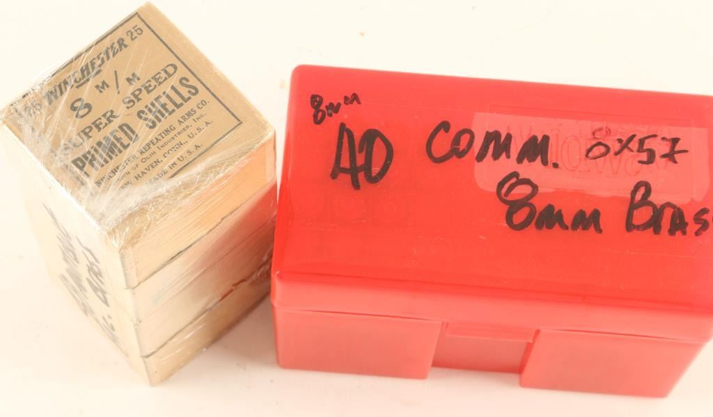 Including 48 rds of antique Winchester 8mm super speed shells in box and 40 rds of 8mm x 57 brass.