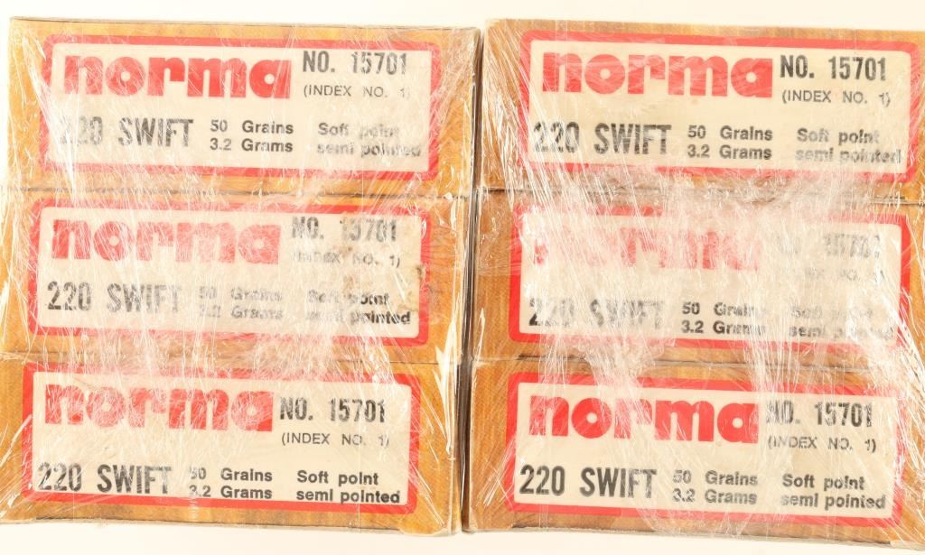 Includes 120 .220 Swift soft point cartridges by Norma
