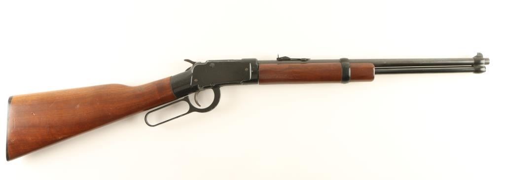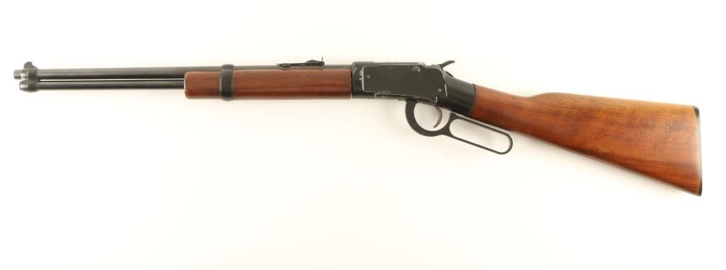 Martini action single shot rifle chambered in .22 caliber, circa 1960's -1970's. Features a black finish, 18.5" blued barrel, faux tube magazine, blade front sight, adjustable rear sporting sight, serrated hammer spur, beveled trigger, smooth wood forend and straight grip shoulder stock. Rifle shows some light surface rust forming on barrel and approximately 70% of it's black finish. Action performs well, bore is bright and wood stocks are very good with some light dings. Condition is good+. ***Modern Firearm***