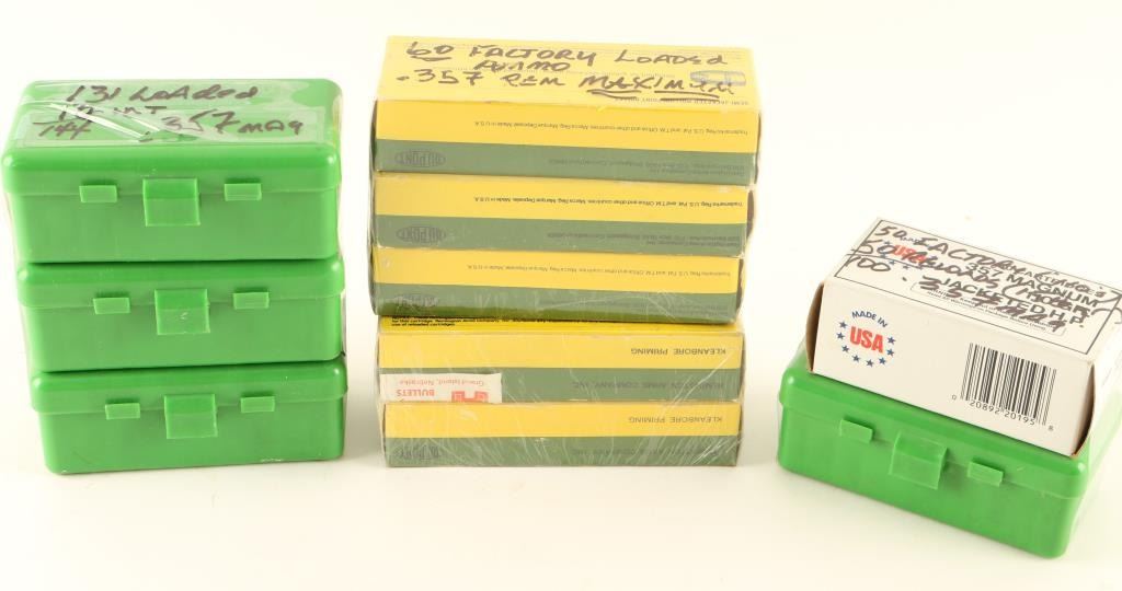 Including 60 factory loaded .357 Rem. Max Ammo, 20 factory loaded .357 Max Ammo, 20 Reloaded .357 Max Ammo, 50 factory loaded .357 Mag HP, 50 Reloaded .357 Mag, 131 Reloaded .357 Mag