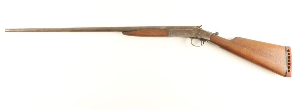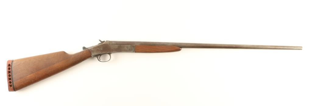 Vintage single shot shotgun chambered for .410 gauge shells and low pressure .44-40 cartridges. Features a 25 3/4" barrel, no front sight, smooth trigger, checkered top lever & hammer spur, smooth wood forend and straight grip shoulder stock with red rubber recoil pad. Shotgun's finish is a mixture of grey and brown patina with a few small spots of surface rust on the left side of the receiver. Action functions well, bore is good, forend has a large chip missing on the left side and shoulder stock shows a crack extending from the upped tang to the butt. Condition is fair. ***Modern Firearm***