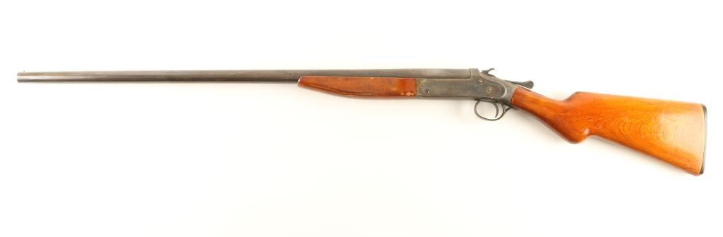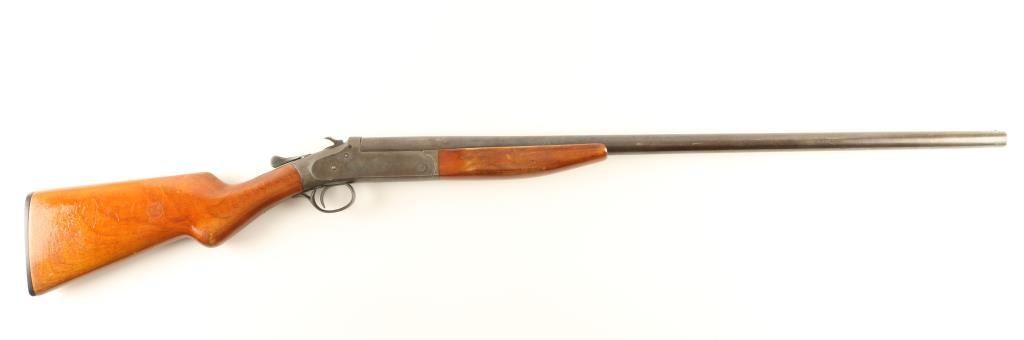 Trade name break-open single shot shotgun chambered for 12 gauge shells. Features a blued 30" barrel, bead front sight, case-hardened receiver, smooth trigger, checkered top lever & hammer spur, smooth wood forend and pistol grip shoulder stock with serrated black plastic buttplate. Blued barrel has drifted to a brown patina and case hardened frame shows good colors with dark oxidation on the right side. Action is strong, bore is dirty, buttplate has a small chip and wood stocks have been revarnished poorly. Condition is good. ***Modern Firearm***