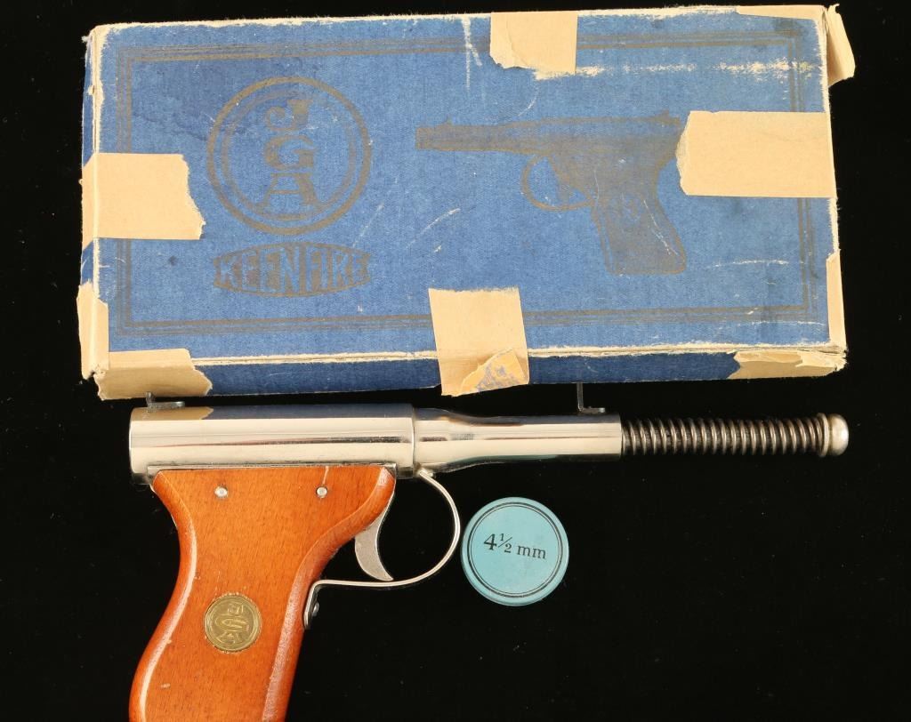With chrome finish and wood grip. Made in Germany. Includes original box and 4.5mm caps