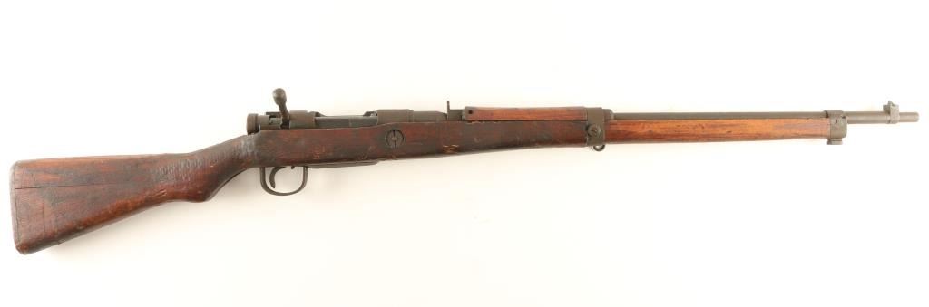 'Last Ditch Carbine' Late WWII Era Japanese Military rifle chambered in 7.7mm. Features a 26" barrel, blade front sight, rear peep sight, ground mum, cylindrical bolt handle, bayonet lug, sling swivels, wood buttplate, Tokyo Juki Kogyo marking, integral box magazine with hinged floorplate, smooth wood handguard and one piece pistol grip shoulder stock. Rifle exhibits a thin layer of rust throughout varying in color from brown to black. Bolt will not completely open or close and wood stock is good with small losses and dings. Condition is poor. ***C&R Firearm*** ***Modern Firearm***
