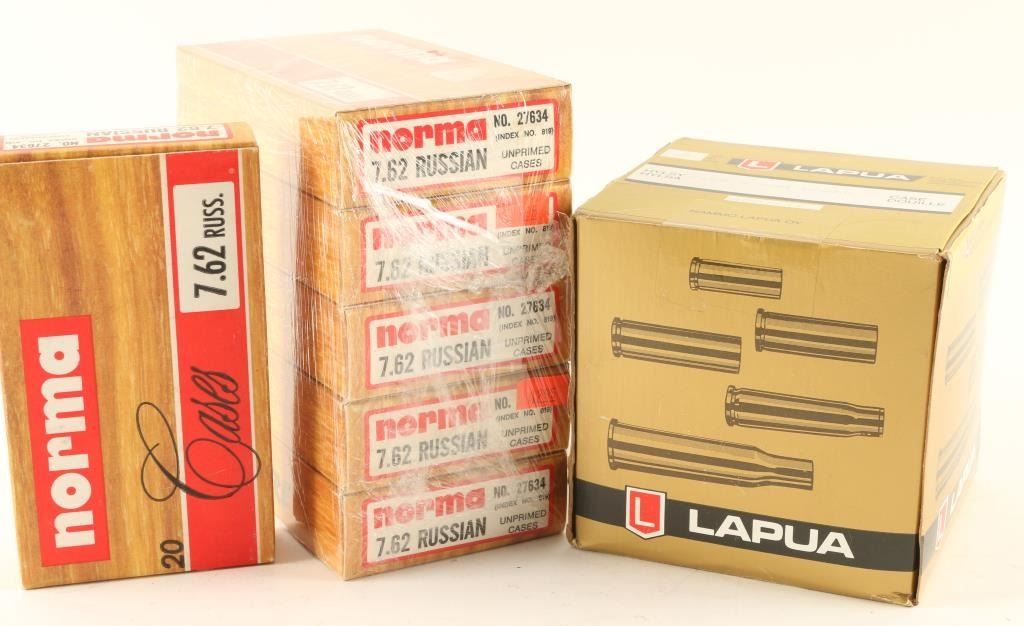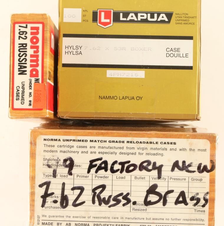 Including approx. 119 rds of factory new 7.62 Russian brass and 100 rds of Lapua new in box 7.62 x 53R Boxer brass.