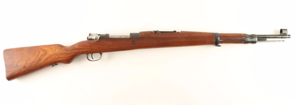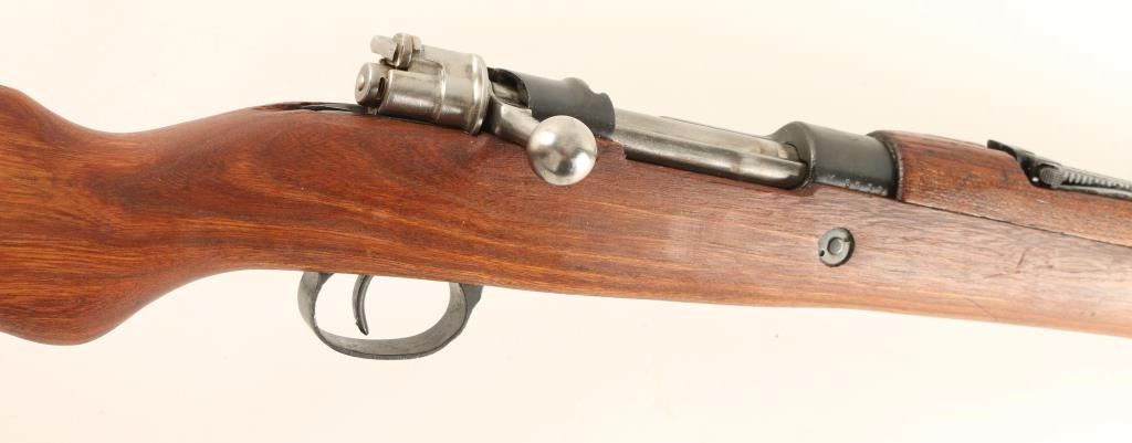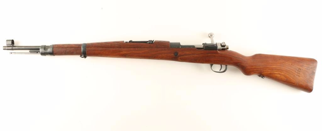 Arsenal reconditioned Yugoslavian military bolt action service rifle chambered in 8mm Mauser. Imported by Samco of Miami, Florida with marking on the underside of the barrel. Features a blued finish, 23.25" barrel, hooded front sight, adjustable rear graduated sight to 2,000 meters, bayonet lug, cleaning rod, straight bolt handle, manual safety, sling swivels, internal box magazine, smooth hardwood handguard and full length pistol grip shoulder stock with metal buttplate. Matching numbers on receiver, floorplate, bolt and stock. Rifle exhibits approximately 98% of it's blued refinish showing little wear. Action is sound, bore is excellent and wood stocks are fine. Condition is excellent. ***C&R Firearm*** ***Modern Firearm***