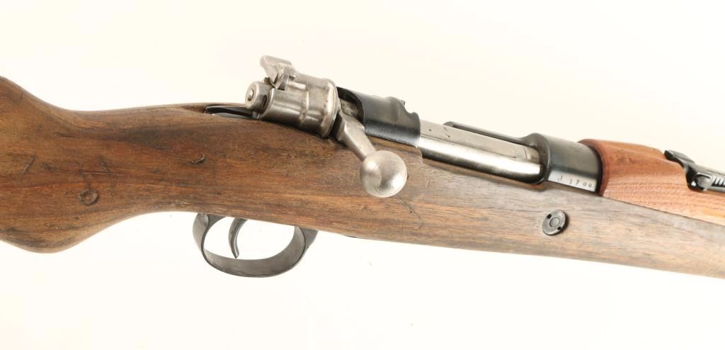 Arsenal reconditioned Yugoslavian military bolt action service rifle chambered in 8mm Mauser. Imported by N.I. LLC of Hurley, New York with marking on the side of the barrel. Features a blued finish, 23.25" barrel, hooded front sight, adjustable rear graduated sight to 2,000 meters, bayonet lug, cleaning rod, straight bolt handle, manual safety, sling swivels, internal box magazine, smooth hardwood handguard and full length pistol grip shoulder stock with metal buttplate. Matching numbers on receiver, floorplate(forced), bolt and stock. Rifle exhibits approximately 98% of it's blued refinish showing little wear. Action is sound, bore is excellent and wood stocks are very good. Condition is near excellent. ***C&R Firearm*** ***Modern Firearm***