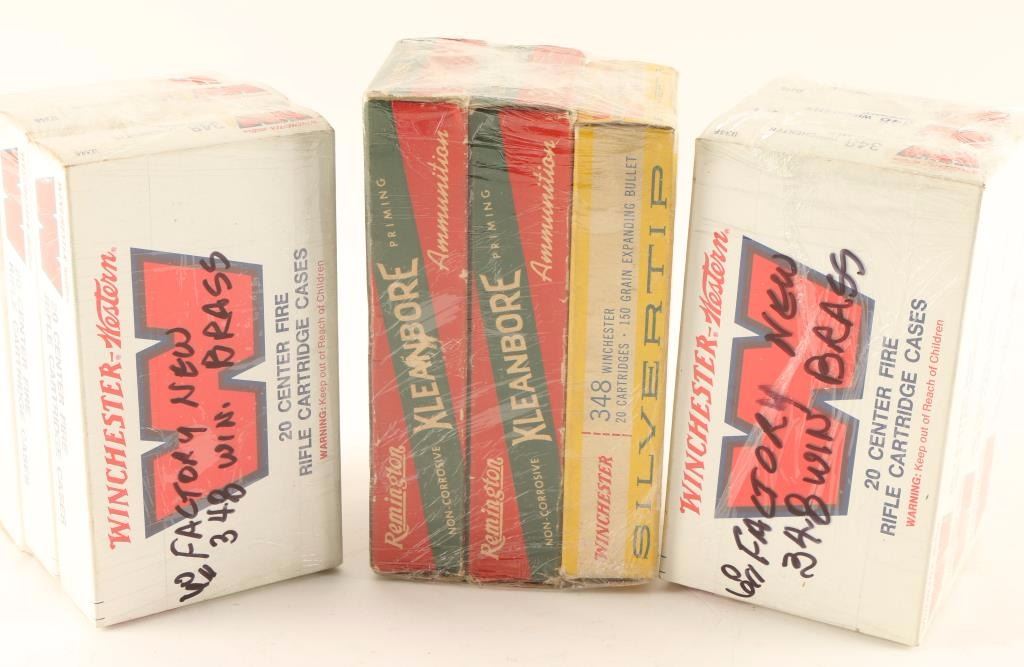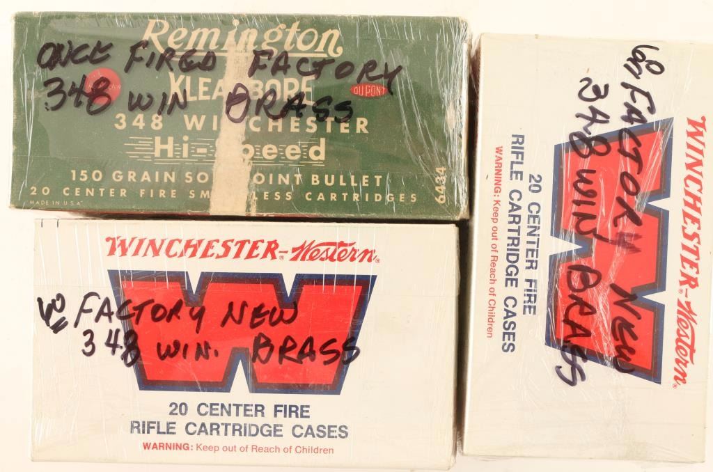 Including 60 rds of once fired .348 brass by various makers and 120 rds of WIN factory new brass.