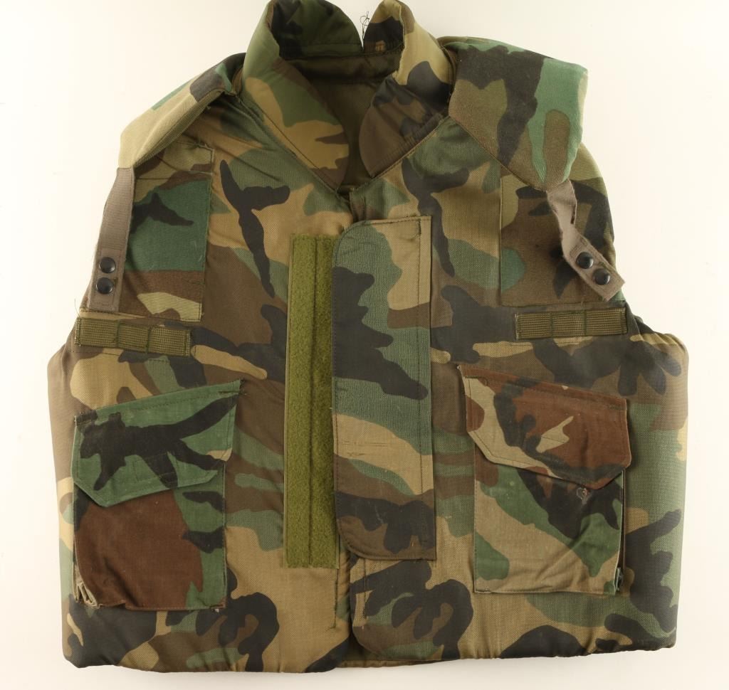 Military issue green camo bullet proof vest in like new condition. Size Large.