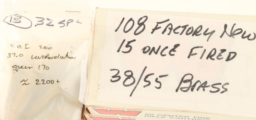 Including approximately 108 rds of factory new WIN brass, 15 rds of once fired WIN brass, and 15 rds of .32 SPL ammo.