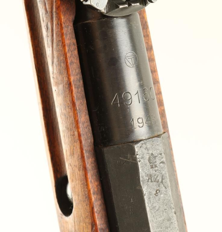 Arsenal reconditioned Finnish bolt action service rifle chambered in 7.62x54R, circa 1943. Features a blued finish, 31.6" barrel, blade front sight, ladder rear sight, 5 round internal box magazine, hex receiver, sling swivels, Tikka marking, straight bolt handle, smooth wood handguard and finger-jointed full length straight grip shoulder stock with metal buttplate. Matching serial numbers on barrel, bolt & receiver. Import marks on barrel. Finish is approximately 82% intact. Action performs well, bore is excellent and wood stock is very good. Condition is very good+. ***C&R Firearm*** ***Modern Firearm***