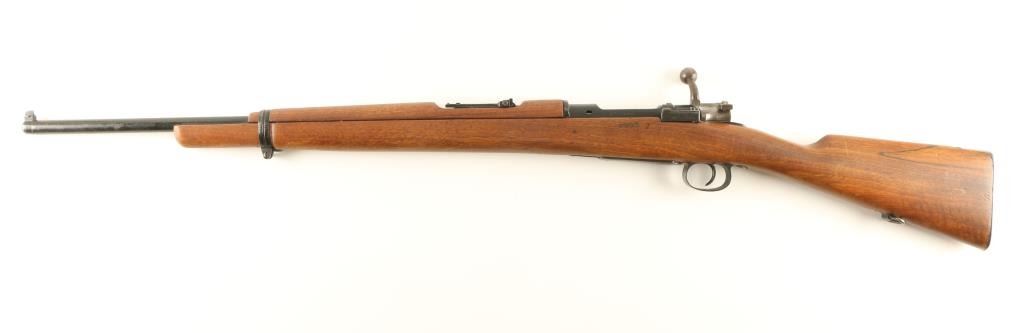 Sporterized Spanish military bolt action rifle chambered in 7mm Mauser, circa 1927. Features a black phosphate finish, 26" barrel, inverted "V" front sight, graduated rear sight to 2,000 meters, internal box magazine, manual safety, bolt bolt handle, smooth wood forend and straight grip shoulder stock with metal buttplate. Rifle exhibits approximately 78% of it's black finish with scattered losses. Action is smooth, bore is good and wood stocks are fine. Condition is good as modified. ***C&R Firearm*** ***Modern Firearm***
