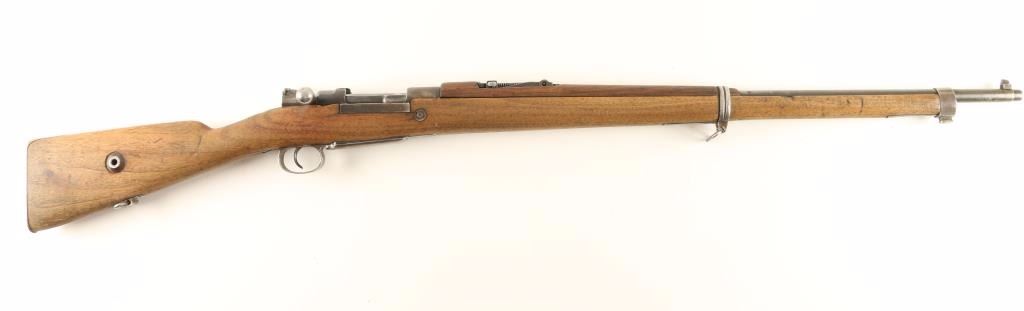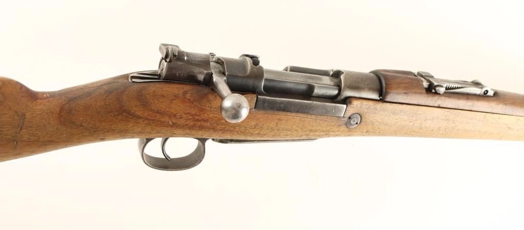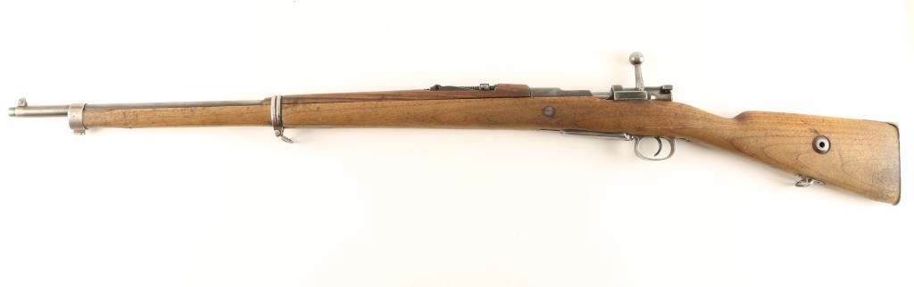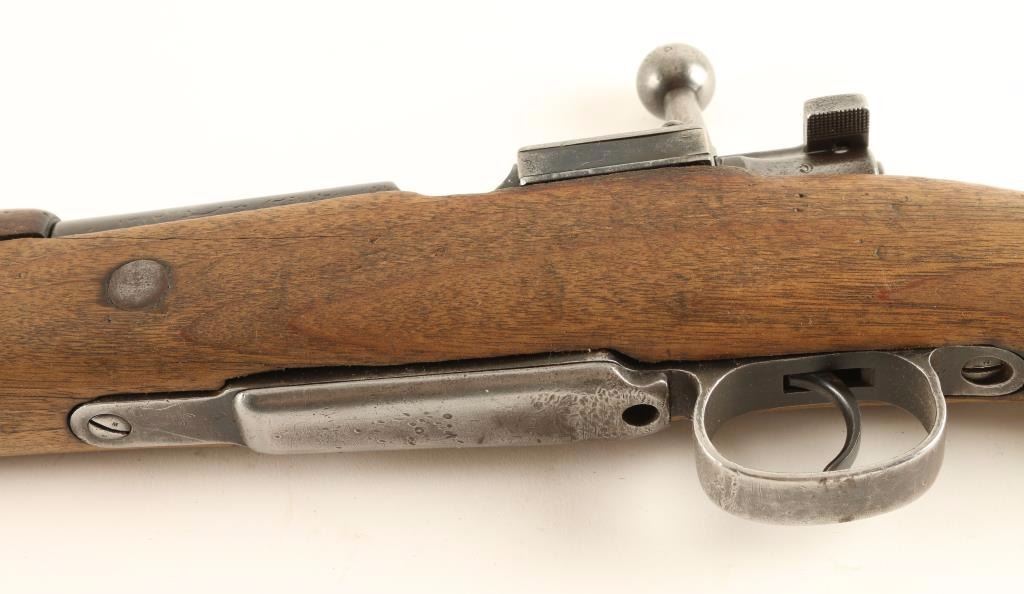 Mauser bolt action service rifle chambered in 7.92x57mm. Features a blued finish, 29" barrel, blade front sight, graduated rear sight to 2,000 meters, bayonet lug, internal box magazine, straight bolt handle, smooth wood handguard and semi-pistol grip shoulder stock with metal buttplate. Matching serial numbers on receiver and rear sight. Rifle still has the magazine cut-off extension on the receiver without the switch. Rifle shows little finish with a brown patina on the receiver and a dull grey patina on the barrel. Action is smooth, bore is dark with good rifling and wood stocks are in good shape but are ill-fitting to the gun. Condition is near good. ***C&R Firearm*** ***Modern Firearm***
