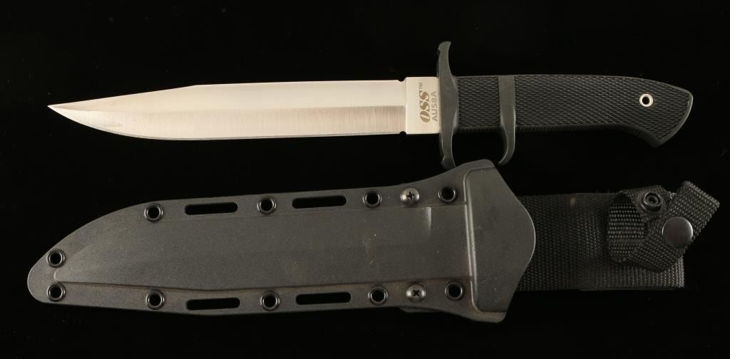 Cold Steel OSS AUS8A Knife with Secure-Ex Sheath. Measures 13 1/4" overall with a 7 5/8" fixed blade.