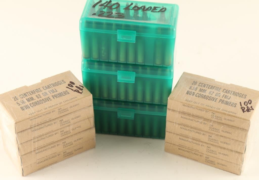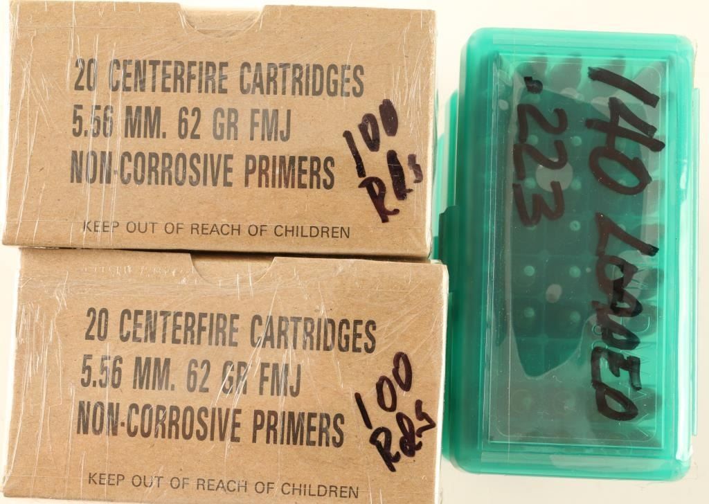 Including 200 rds of 5.56mm 62GR FMJ new in the box and 140 .223 reloads.