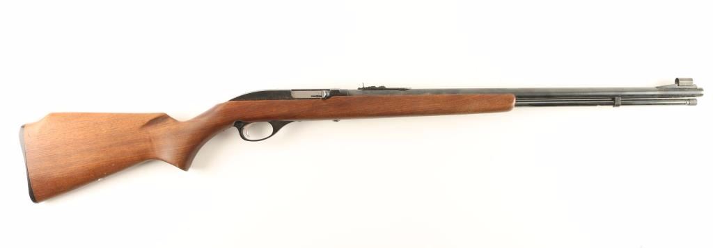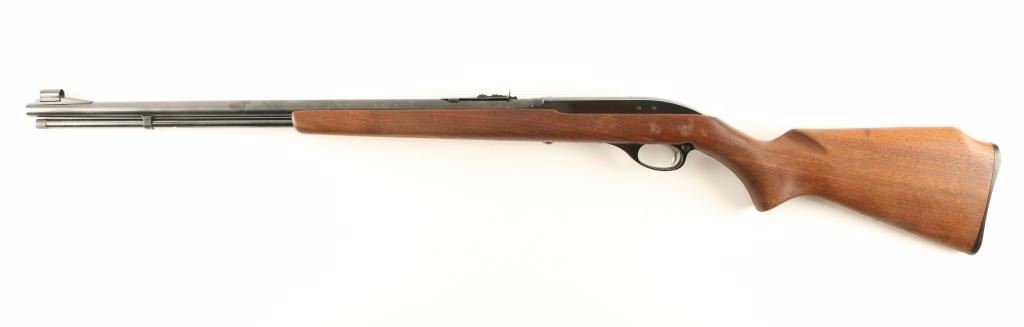 Tube-fed semi-automatic sporting rifle chambered in .22 Long Rifle. Features a blued 22" barrel, ramped & hooded front sight, adjustable rear sporting sight, full tube magazine, drilled & tapped receiver, serrated trigger, push button safety and smooth wood pistol grip shoulder stock. Rifle retains approximately 90% of it original finish with wear on the top of the receiver. Action is smooth, bore is bright showing a ring and wood stock is fine. Condition is very good. ***Modern Firearm***