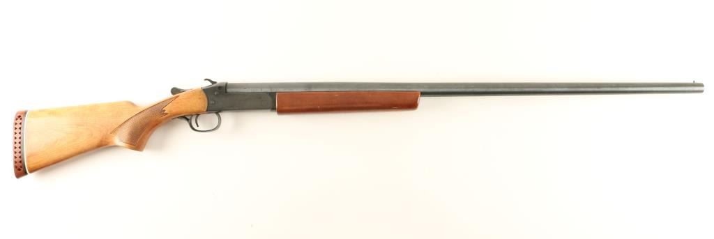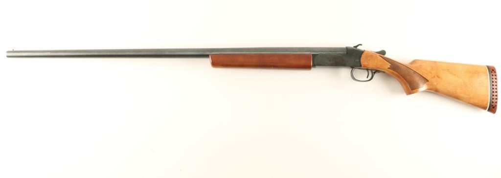 Canadian made single shot shotgun chambered for 2 3/4" 16 gauge shells. Features a blued finish, 32" full choked barrel, bead front sight, smooth trigger, checkered top lever, serrated hammer, smooth wood forend and checkered pistol grip shoulder stock with recoil pad. Shotgun retains approximately 90% of it's blued finish with the spots of the receiver turning to a rust brown color. Action is crisp, bore is excellent and wood stock are good. Condition is good to very good. ***Modern Firearm***