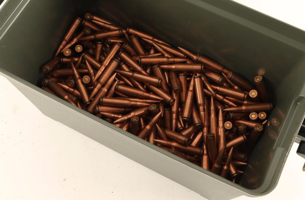 Includes approximately 350 rds of .308 ammo in a plastic ammo box.