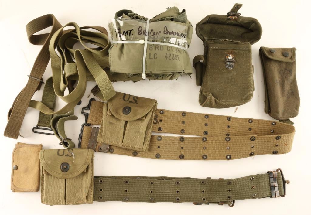 Including fifteen 8 rd clip bandelier's, canvas mag pouch, 2 US marked webbing belt with magazine holder and much more.