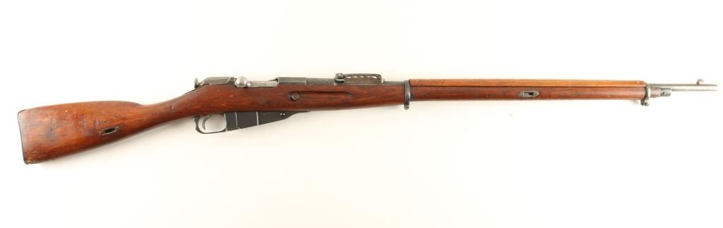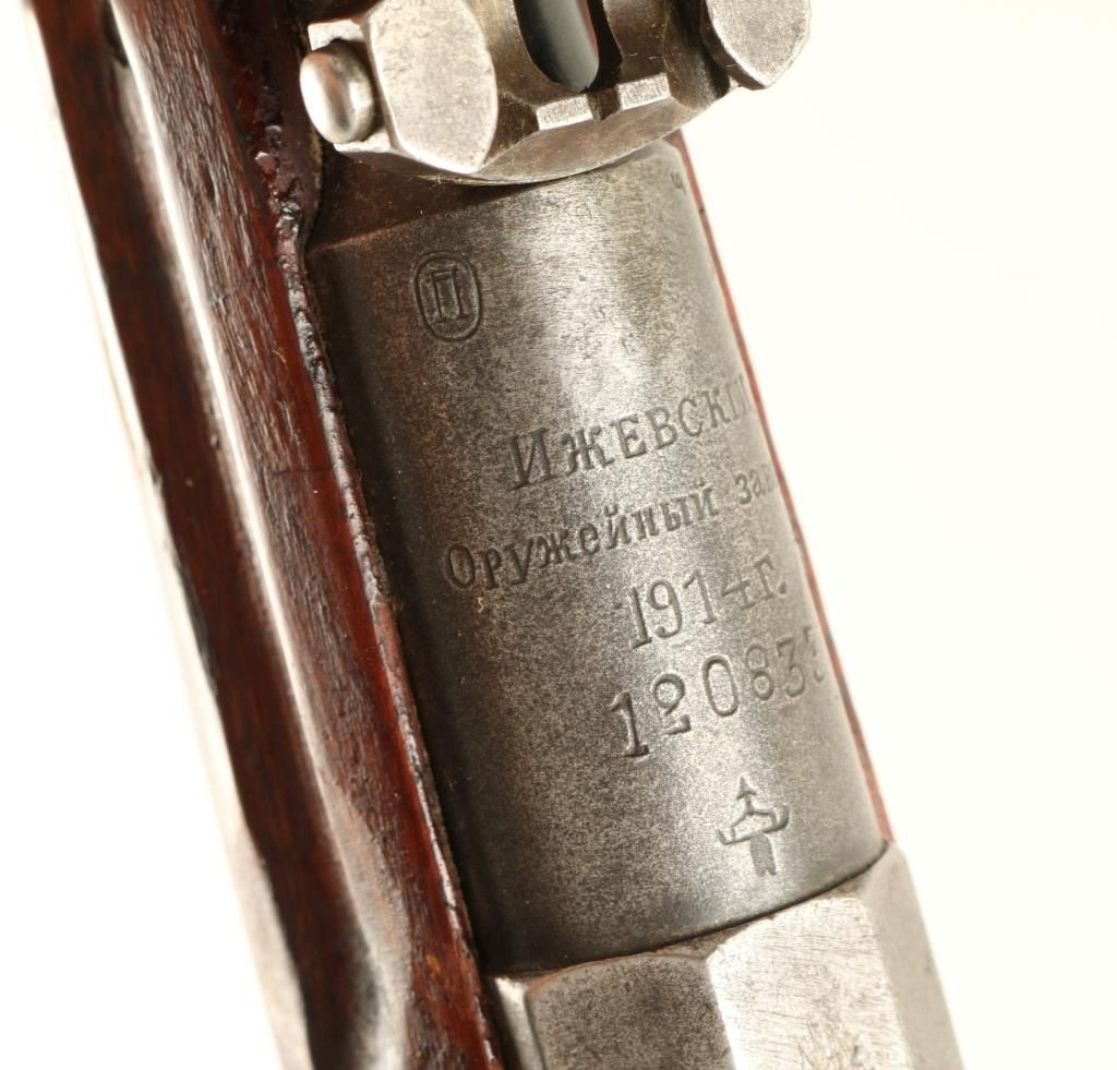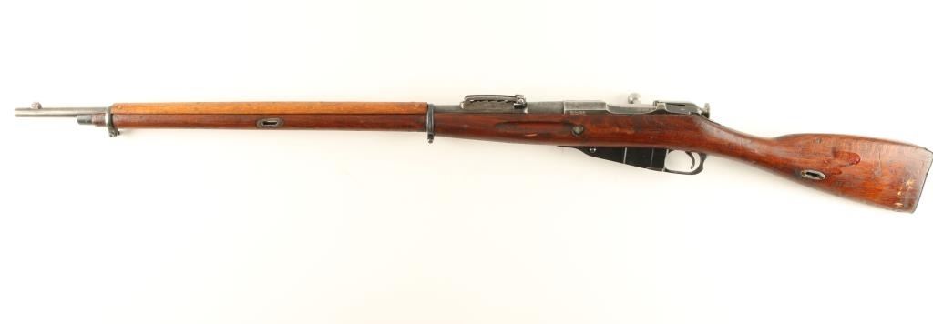 Russian bolt action service rifle chambered in 7.62x54R, circa 1914. Features a blued finish, 31.6" barrel, blade front sight, ladder rear sight, 5 round internal box magazine, hex receiver, Izhevsk pre-1928 Soviet marking, straight bolt handle, smooth wood handguard and full length straight grip shoulder stock with metal buttplate. Matching serial numbers on barrel & receiver. Import marks on barrel. Finish is approximately 20% intact. Action performs well, bore is dark with good rifling and wood stock is good. Condition is good. ***C&R Firearm*** ***Modern Firearm***