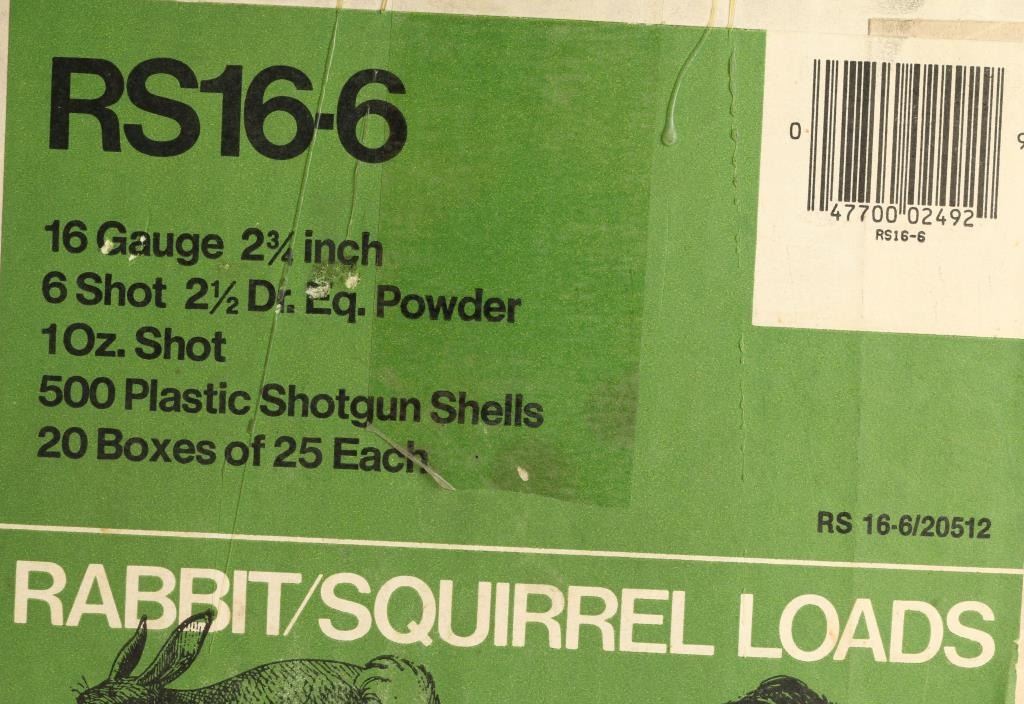 Including an unopened case of Remington RS16-6 16GA, 2 3/4" 10 oz. shotgun shells