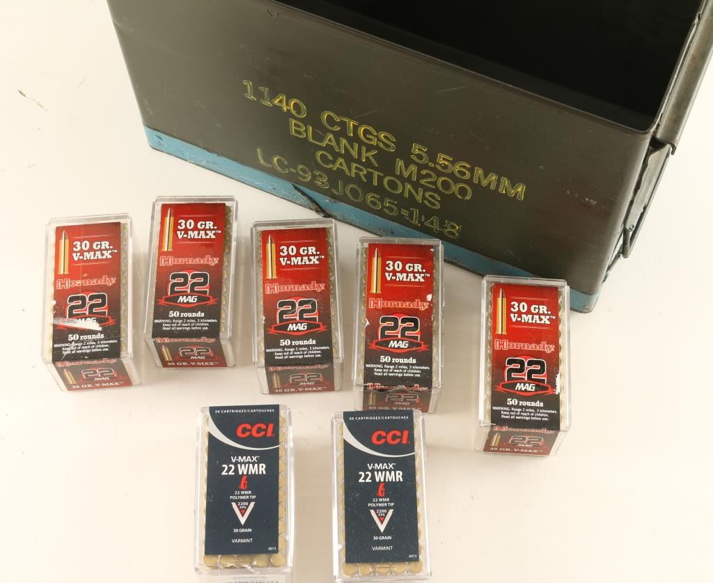 Includes approx. 250 rds of Hornady .22 Mag ammo and 50 rds of CCI .22 WMR ammo.