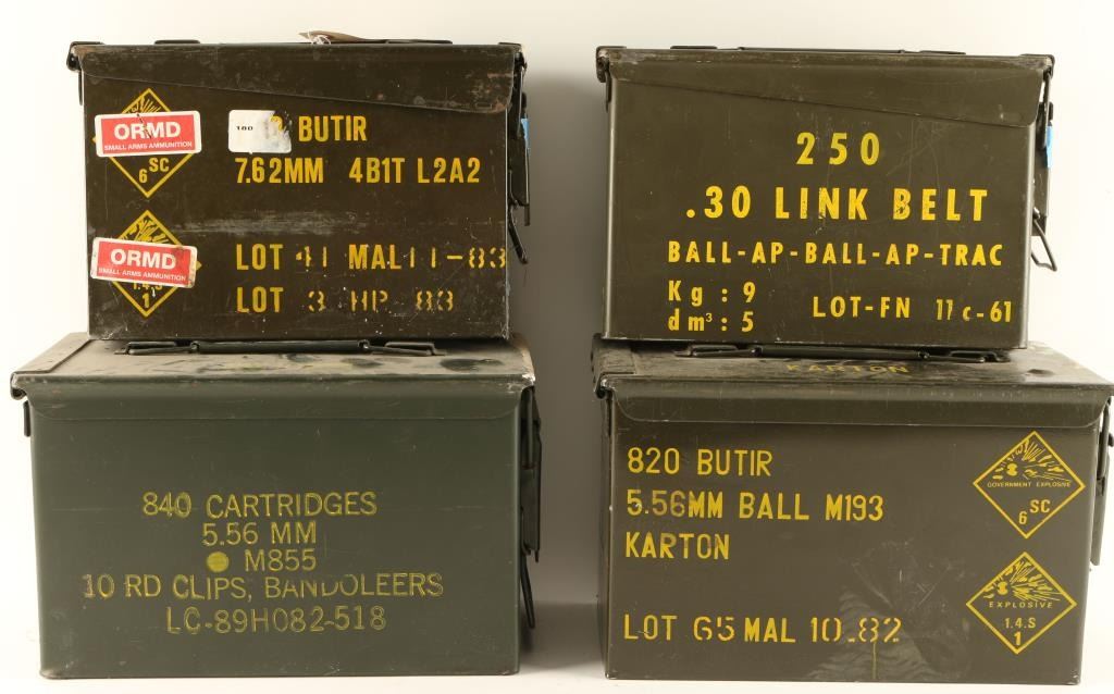Includes 4 metal ammo cans - 2 large cans measuring 12"x6"x7" and 2 small cans measuring 11"x4"x7".