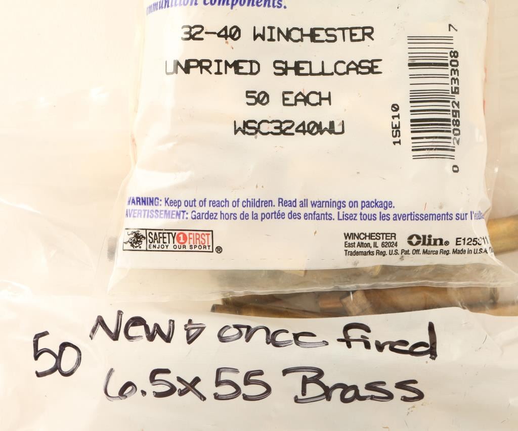 Including 100 rds of New and Once Fired 6.5 x 55 Brass and 200 rds of new 32.40 Win.