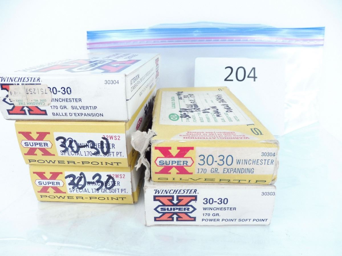 Lot 204 30:30 fired brass. Some loose in boxes. Approx. 100