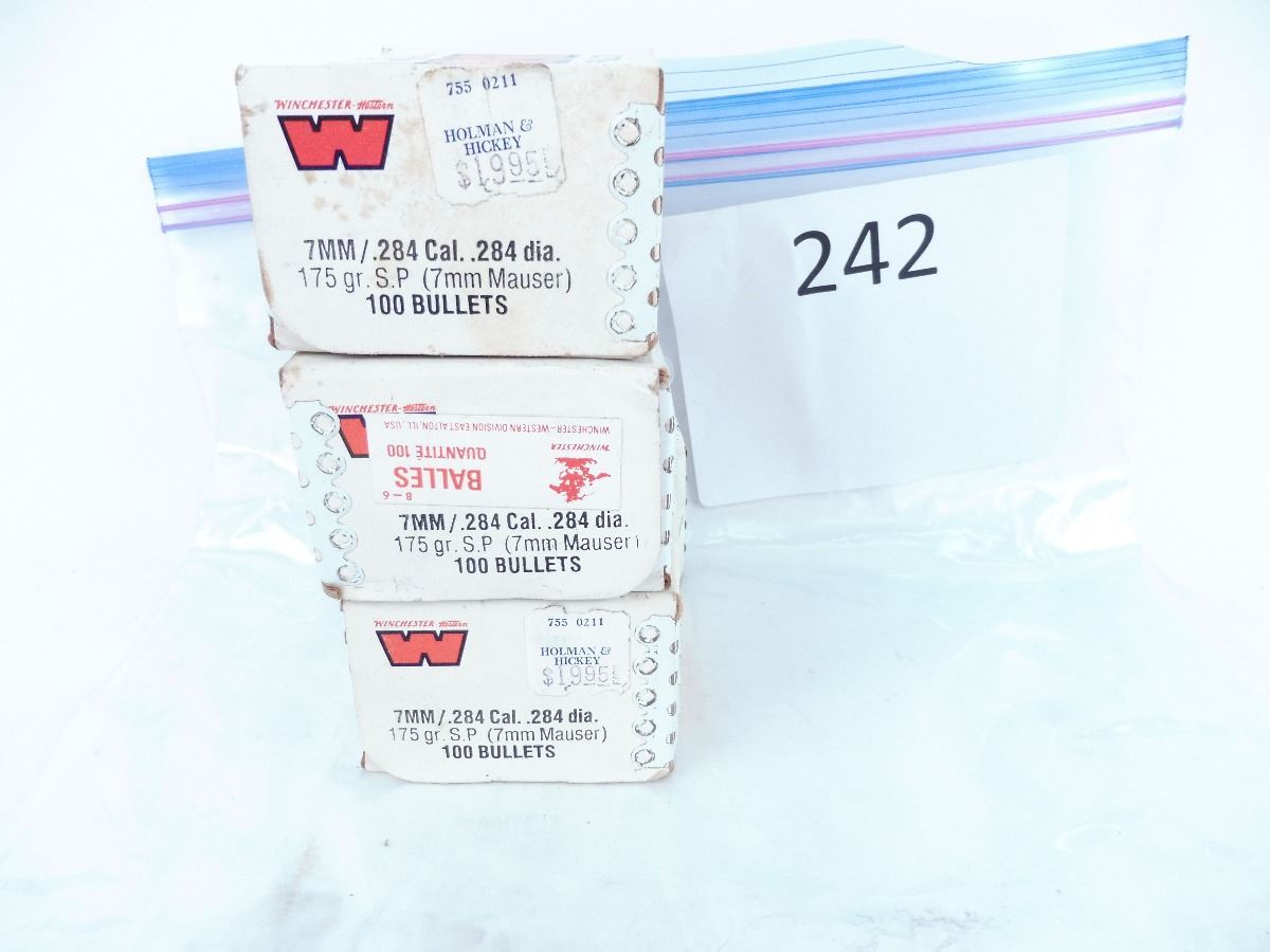 Lot 242 3 boxes x 100 7mm. Winchester bullets. 175 gr. SP