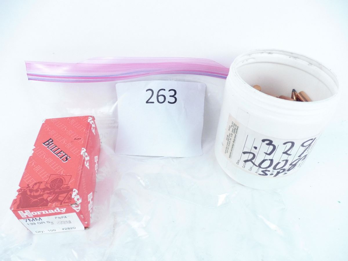 Lot 263 Approx 200 rds. Schroeder .329 200 gr. JSP bullets + 100 Hornady 7mm. 139gr. SP