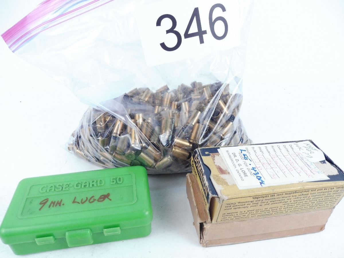 Lot 346 Package of assorted used 9mm brass