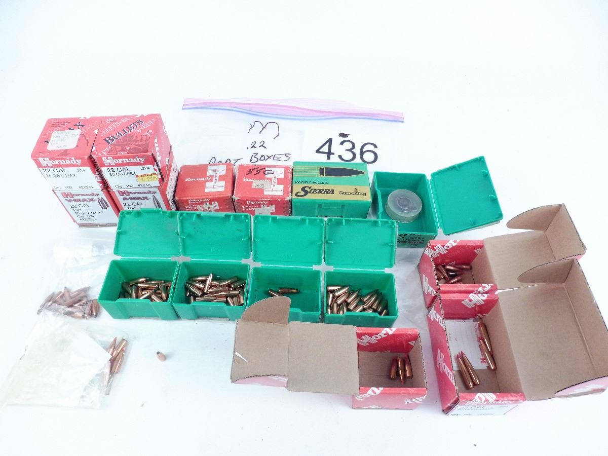 Lot 436 15 part boxes .22 cal assorted bullets. Some with very few