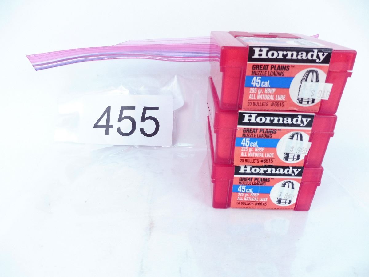 Lot 455 45 CAL. Hornady great plains 285 GR. HBHP muzzle loading bullets