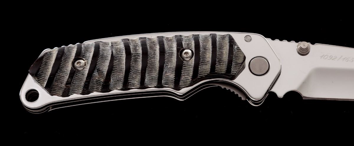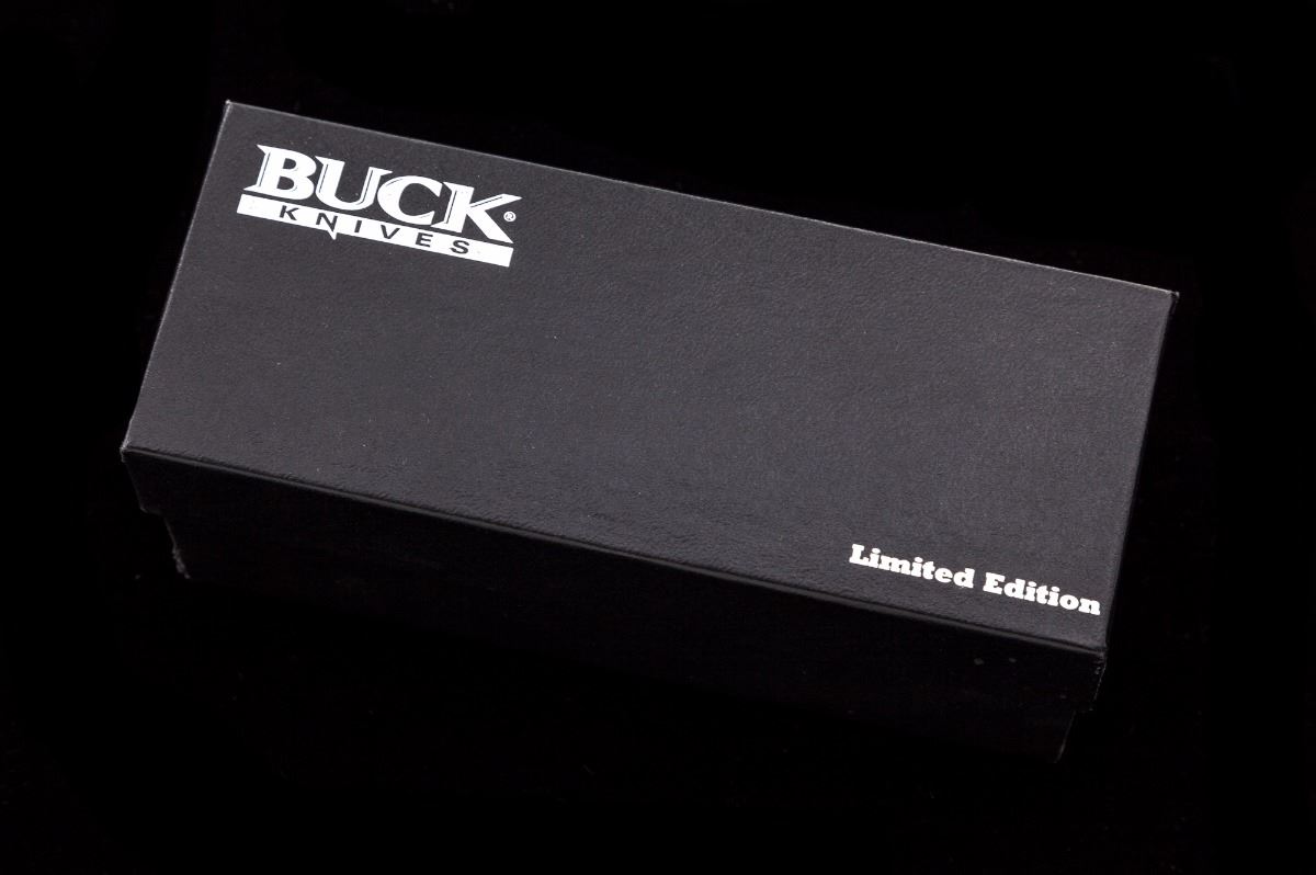 Limited Edition Buck Collectors Club Model 279SP9 Folding Alpha Hunter, #1092, 3-3/8'' mirror polished blade with 24k gold etched Buck Collectors Club logo, mirror polished frame with water buffalo handles, dual thumb stud, and some decorative file work to both the back of blade and frame. Included is the original box, leather sheath, and Certificate of Authenticity that matches the knife. These knives were limited to a total production of 165 pieces and were produced exclusively for Buck Collectors Club members in 2004. Condition is excellent, appearing as new. Box with moderate damage to one of the end panels. Est.: $200-$400.