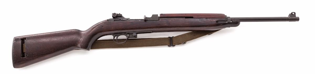 U.S. M1 Carbine, by Inland, #194370, .30 Carb. cal., 18'' barrel, parkerized finish, walnut stock, with ''N'' marked front sight and milled adjustable rear sight. Barrel is marked ''12-42''. Condition is excellent as upgraded retaining approx. 95% parkerized finish. Barrel, receiver and stock are all marked Inland. The ''I'' cut high wood stock is marked ''OI'' in sling cut with large Ordnance wheel on right side and is in excellent condition. Handguard is the early two-rivet wide channel type. Mounted with sling and oiler. Action is tight, bore is bright. Est.: $800-$1,200. (C&R)