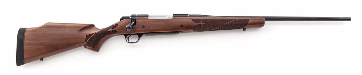 Browning BBR Bolt Action Rifle, #07203PX117, .30-06 cal., 22'' barrel, blue finish, fleur d'lis checkered cheekpiece walnut stock, with Limbsaver black rubber recoil pad, sling swivel studs, gold Browning logo to bottom of triggerguard, and tapped for scope mounts. Made in Japan. Condition is excellent, appearing as new with only a few light marks from handling. Good action, bright bore, clear scope optics. Est.: $500-$700. (Modern)