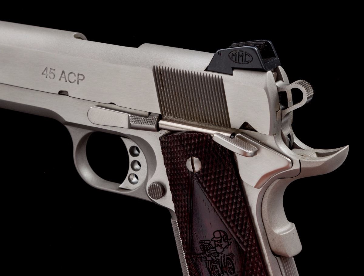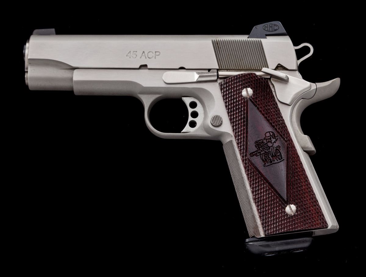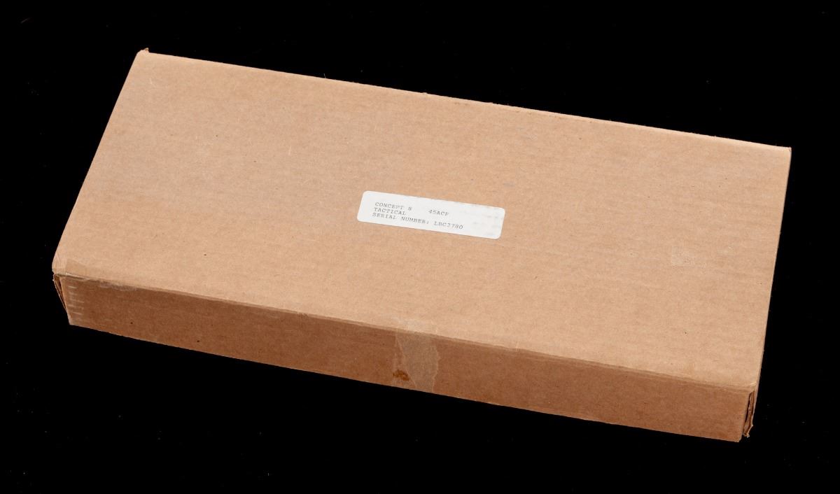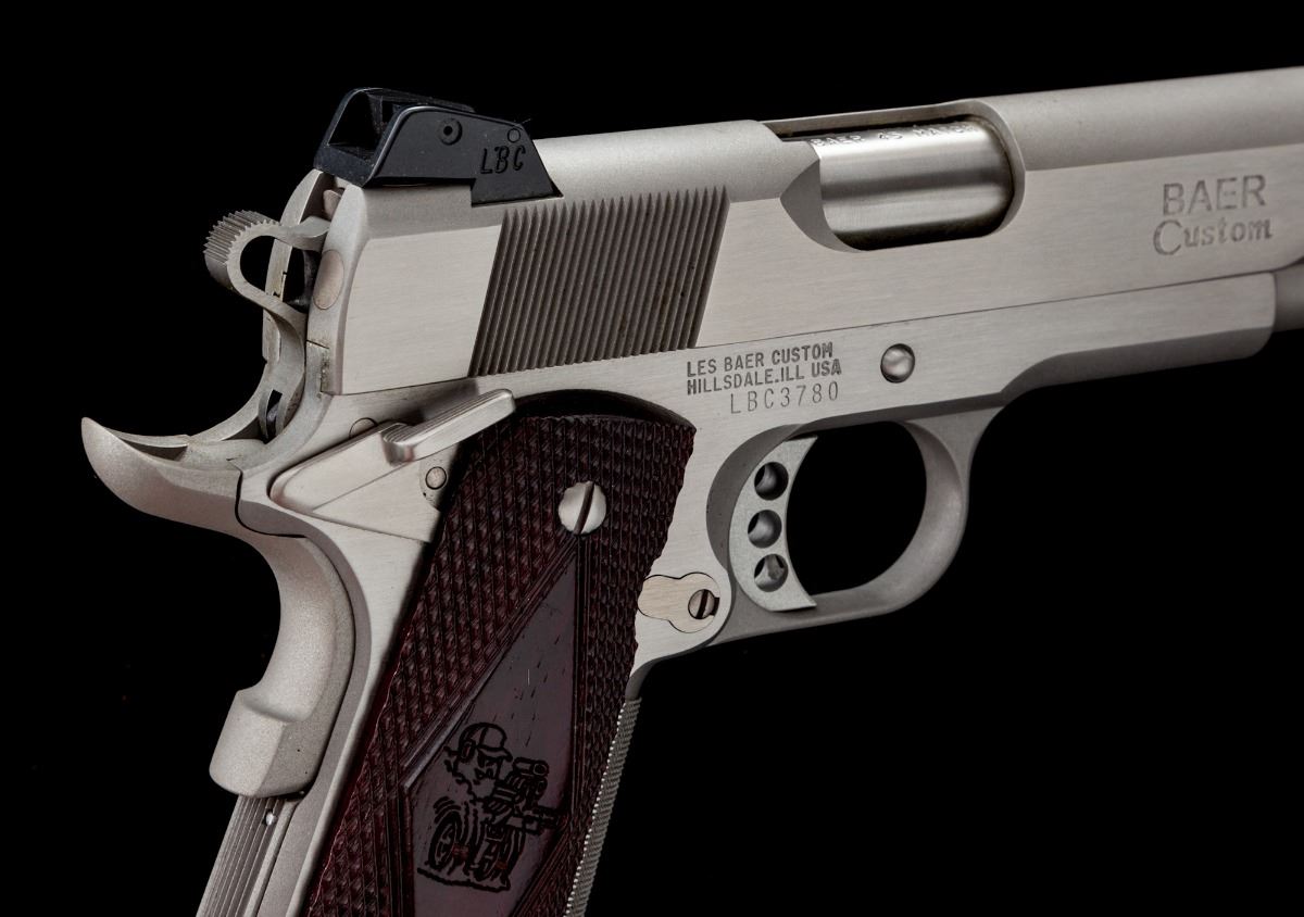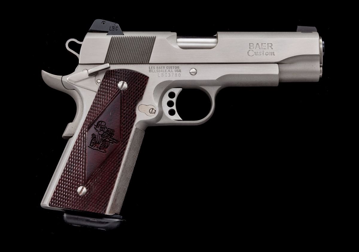 Les Baer Custom Model 1911 Concept VIII Tactical Semi-Automatic Pistol, #LBC3780, .45 ACP cal., 4.25'' Match barrel, stainless steel, premium Baer custom wood grips with laser-engraved Baer logo, checkered front grip strap, serrated back grip strap, ambidextrous thumb safety, beavertail grip safety, skeletonized trigger and hammer, blade front sight and Baer Deluxe combat rear sight, with one magazine and original paperwork, in kraft box with matching label. Condition is excellent, appearing as new. Metal surfaces with some scattered fine surface scratches and large amounts of packing grease/preservative to barrel and slide. Grips are as new. Action is tight, bore is mirror bright. Est.: $1,500-$2,000. (Modern/PPT)