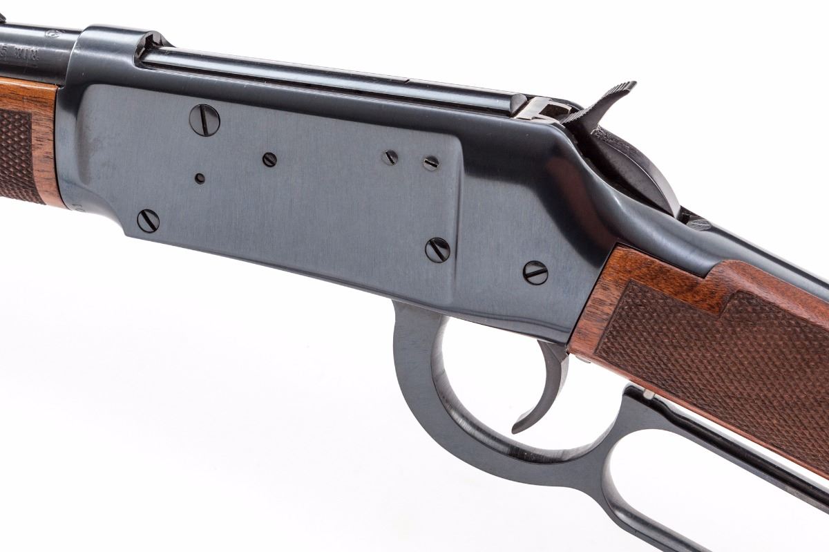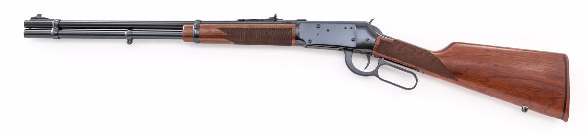 Winchester Model 94 XTR Big Bore Lever Action Carbine, #BB047401, .375 Win. cal., 20'' round barrel, royal blue finish, factory checkered straight walnut stock and forend, Winchester red rubber butt pad, ramped silver bead front sight and semi-buckhorn rear sight, with sling swivel studs. Condition is excellent retaining approx. 98% blue. Receiver with general fine micro-scratching. Stock with crisp checkering, scattered impressions, and one noticeable scratch to left side of buttstock. Action is crisp, bore is excellent with good rifling. Est.: $650-$850. (Modern)