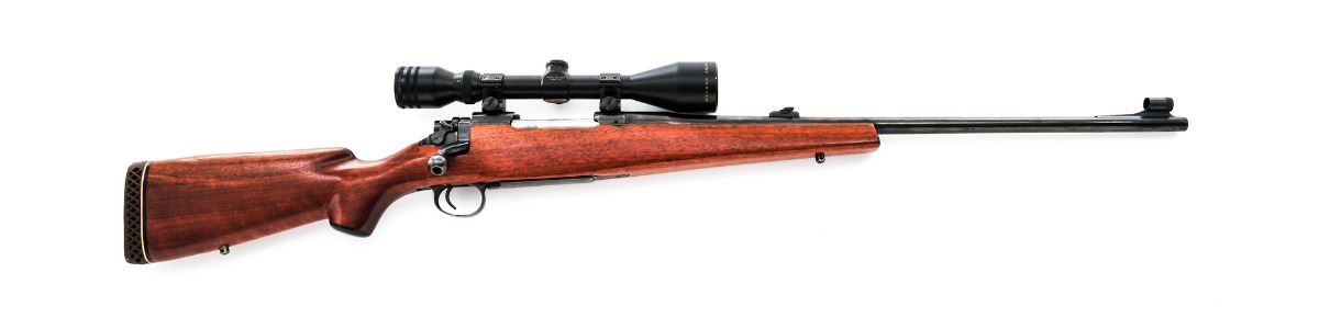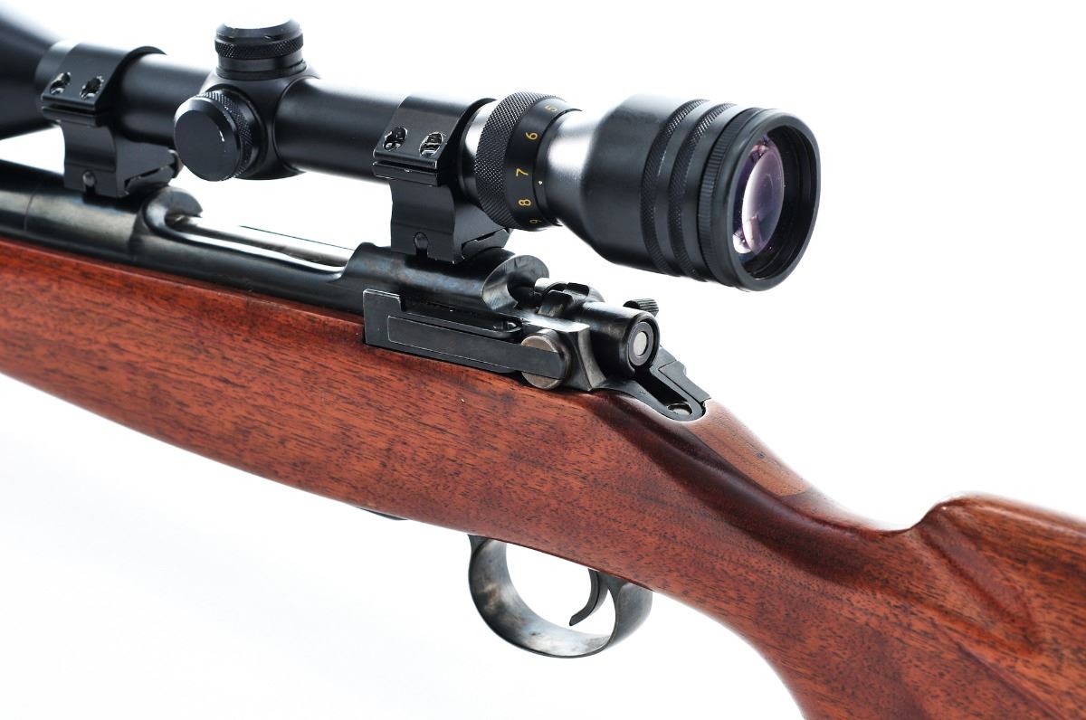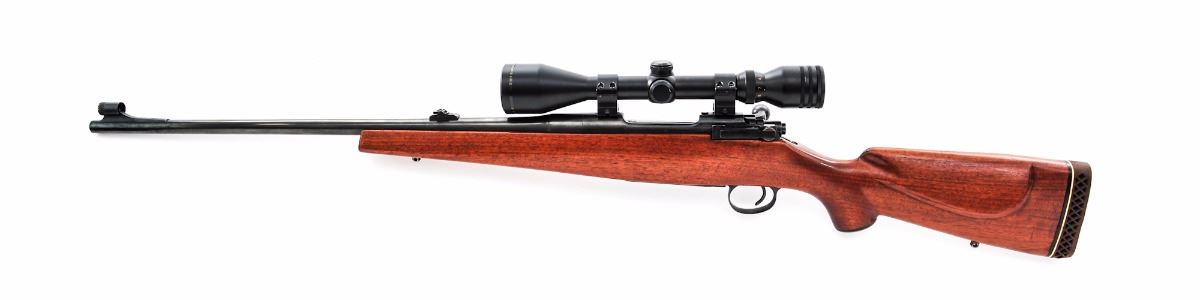 Sporterized U.S. Enfield Model 1917 Bolt Action Rifle, by Winchester, #123921, .30-06 cal., 24'' barrel, blue finish, smooth walnut checkpiece stock with butt pad, covred blade front sight and ramped buckhorn rear sight. Topped with a Simmons 3x-10x44mm scope on Weaver rings. Condition is excellent as reconfigured and reblued, retaining approx. 95% of its reblued finish. Stock is excellent with shadow line cheek piece. Sling swivel studs installed. Action is tight, bore is strong with frosting. Est.: $250-$400. (C&R)