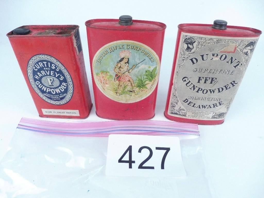 Lot 427 3 Old collectible empty powder tins