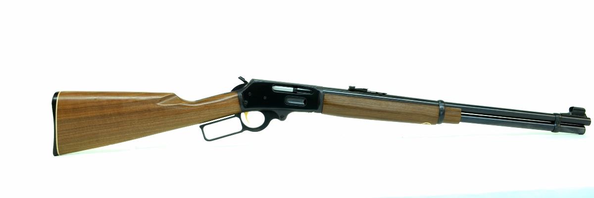 STOCK 253R-0235-G1, MARLIN, MODEL 336, CAL 30-30, LEVER ACTION, BARREL LENGTH 20", MICRO GROOVE BARREL ADJUSTABLE IRON SIGHTS, HOODED FRONT SIGHT, HAMMER EXTENSION, HARD RUBBER BUTT PLATE, WOOD AND BLUING VERY GOOD, MADE IN THE U.S.A. CONDITION 8.5/10, SN. 25082XXX