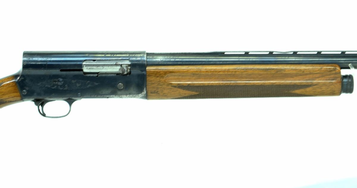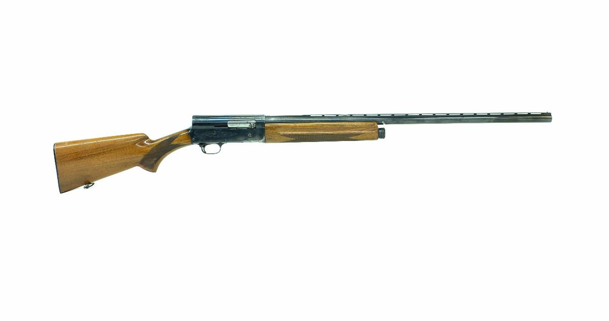 STOCK 1254S-0240-G1, BROWNING AUTO 5, SEMI-AUTOMATIC, 12GA X 2 3/4". 29" BARREL WITH FIXED FULL CHOKE, WOOD HAS A FEW MARKS AND SCRATCHES, BLUING WORN AND GREY WITH SOME PITTING, BORE VERY GOOD, RIB HAS A DENT, SN. 68M36XXX