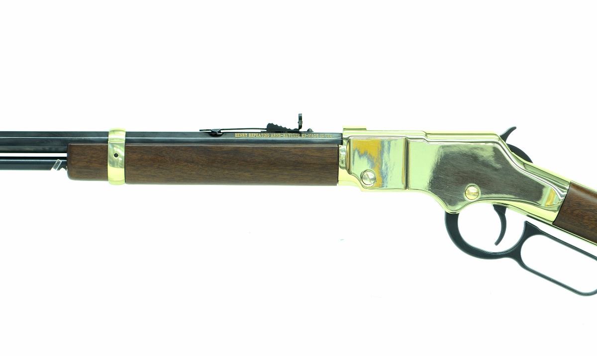 STOCK 269R-0036-G1, HENRY REPEATING ARMS CO. MODEL GOLDEN BOY, .22 MAG, TUBE FEED, LEVER ACTION, 20 1/2" BARREL, BLUED FINISH BRASS RECEIVER, BUTT PLATE & BARREL BAND, NO BOX, ORIGINAL INSPECTION TAG, APPEARS NEW, MADE IN THE U.S.A,