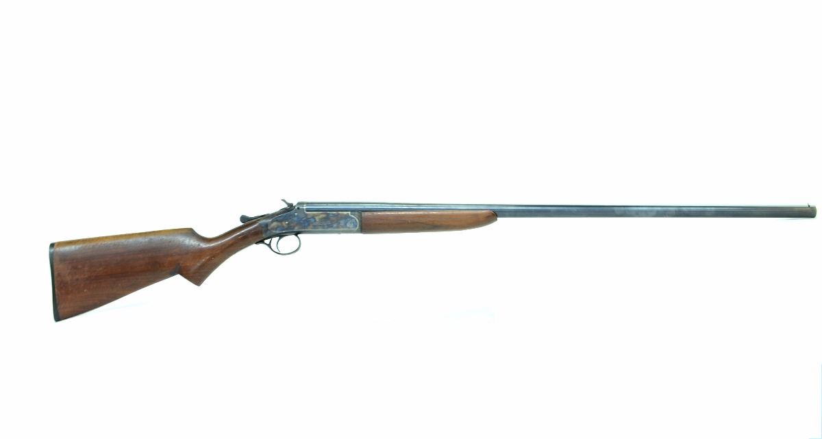 STOCK 1267S-0510-G1,IVER JOHNSON, MODEL CHAMPION, 12GA X 2 3/4", SINGLE SHOT BREAK ACTION, BARREL LENGTH 32" FIXED FULL CHOKE, CASE COLORED RECEIVER, MADE IN CANADA, CONDITION 7/10 SN. 38XXX