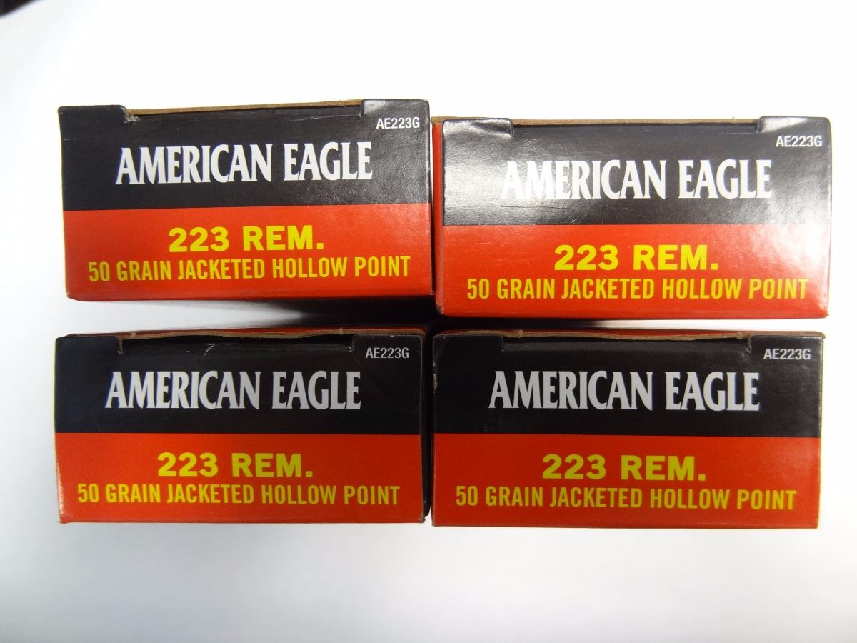 Lot 505 4 BOXES AMERICAN EAGLE .223 REM 50GR JHP