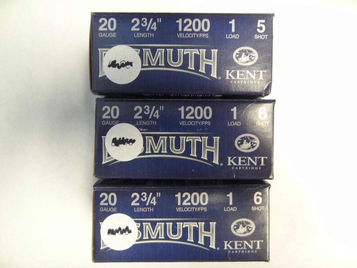 Lot 550 3 BOXES KENT BISMUTH 20GA 2 3/4" 1 LOAD, 6 SHOT