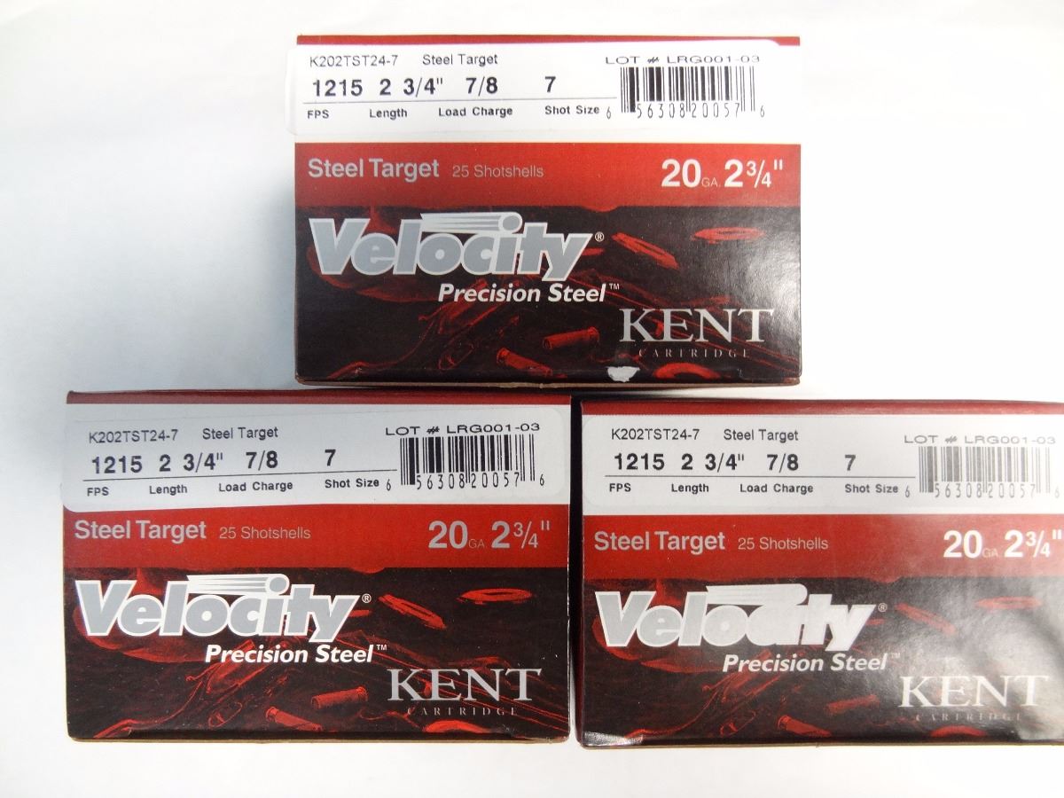 Lot 552 3 BOXES KENT VELOCITY STEEL 20GA 2 3/4" 7/8 LOAD, 7 SHOT