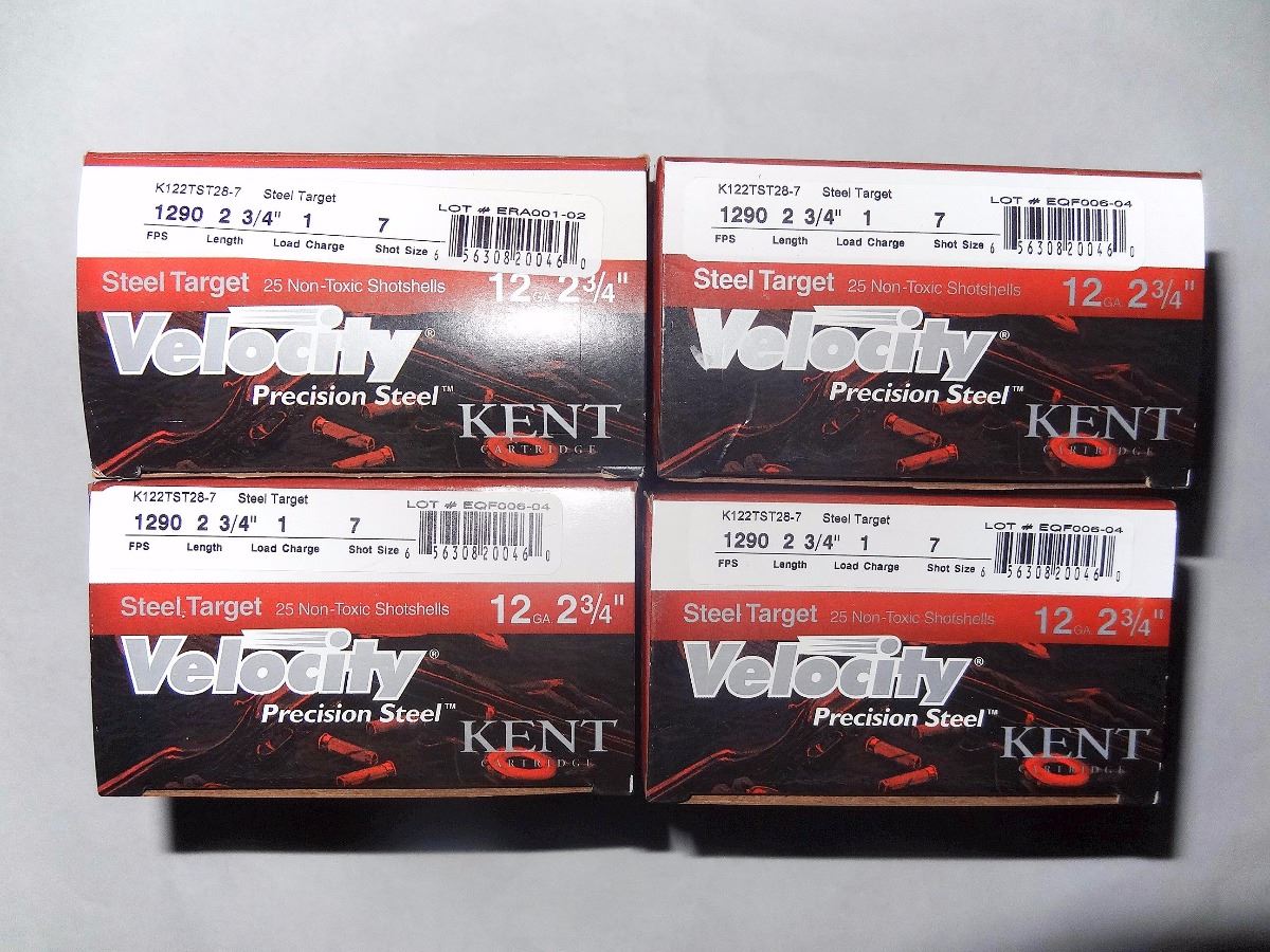 Lot 556 4 BOXES KENT VELOCITY STEEL 12GA 2 3/4" 1 LOAD, 7 SHOT