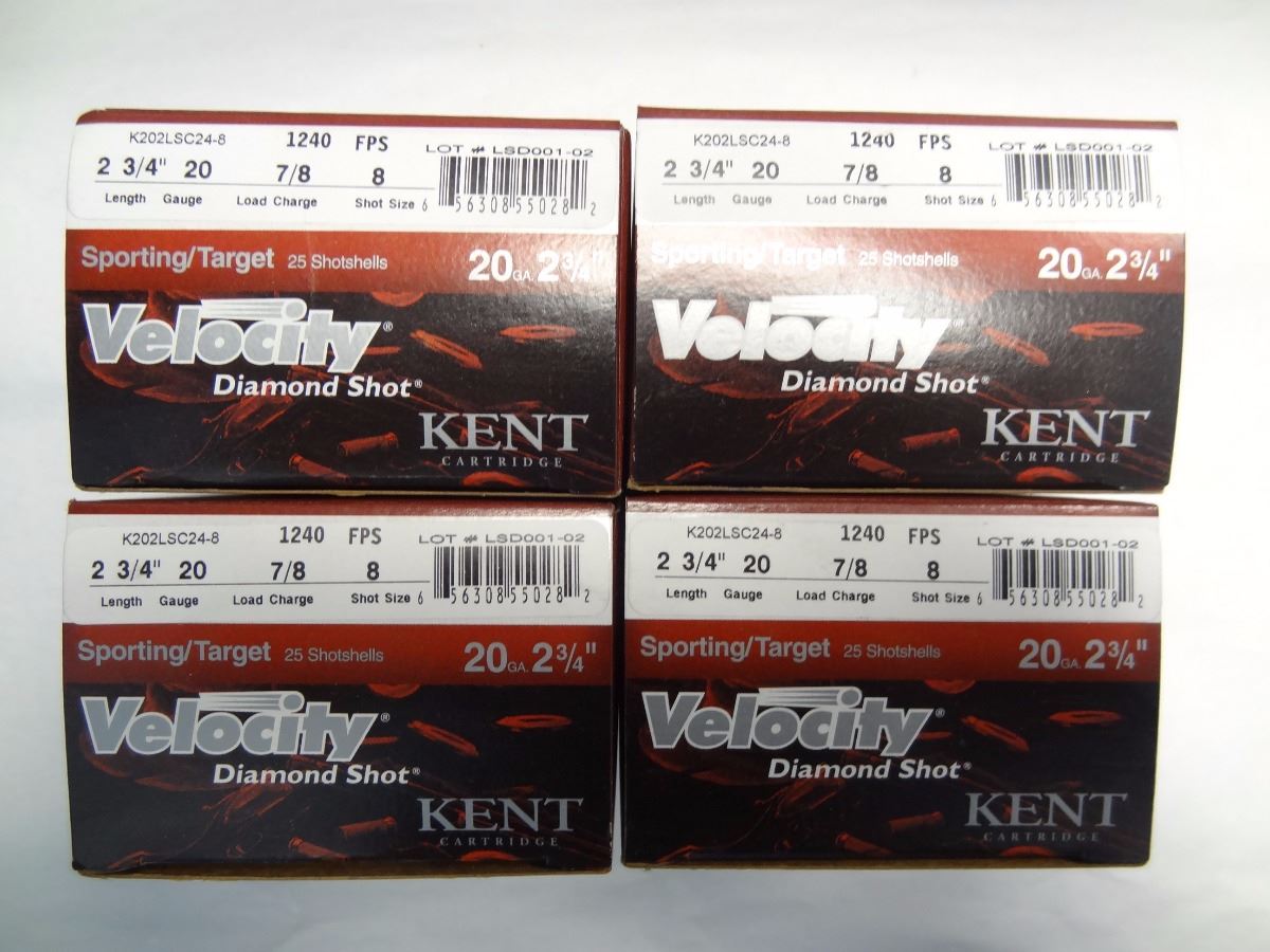 Lot 560 4 BOXES KENT VELOCITY DIAMOND 20GA 2 3/4" 7/8 LOAD, 8 SHOT